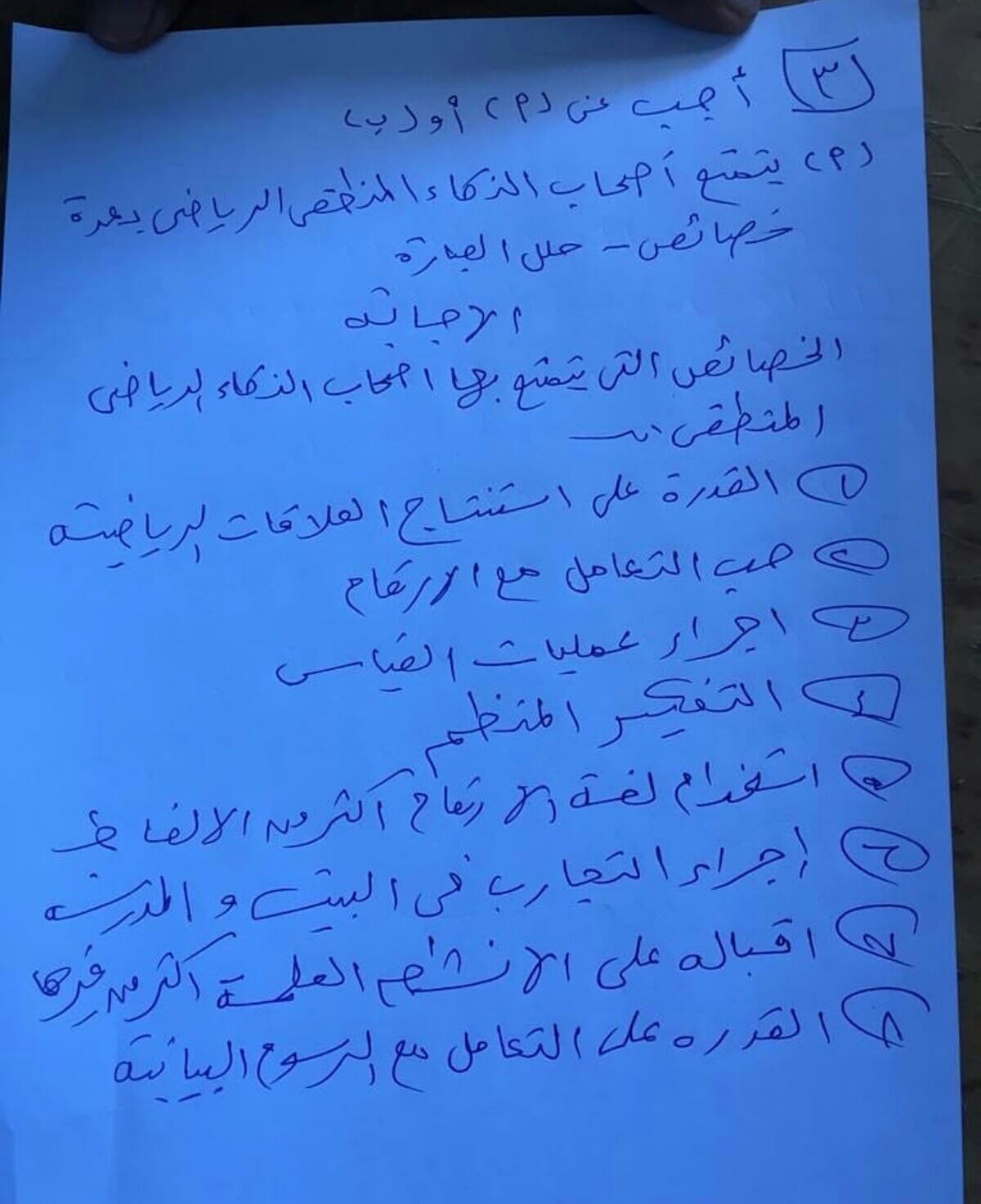 الموضوع الثالث 5 أسئلة = 15 درجة